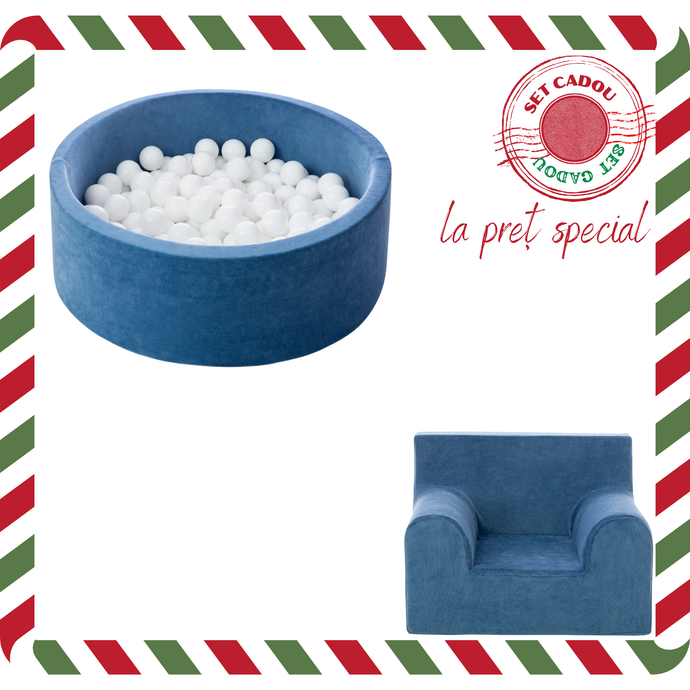 Set Cadou Craciun Piscina cu bile + fotoliu pentru copii, Albastru, TWINDECO Christmas10%